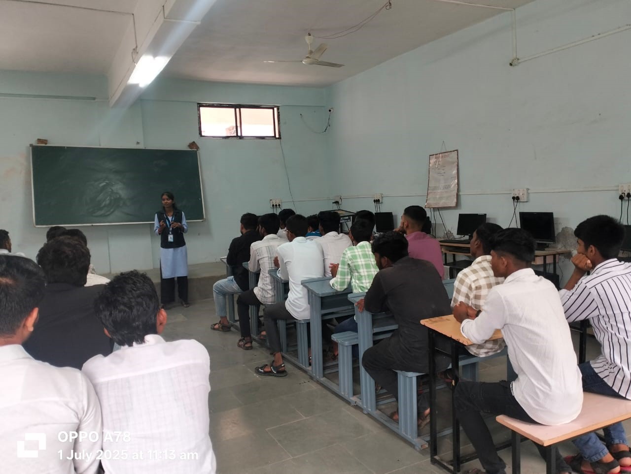 Posted : 2025-07-01MRS. MALI P. A. LECTURER CO DEPT. GIVING INTRODUCTION OF CAMPUS AND COURSES TO NEWLY ADDMITTED STUDENTS