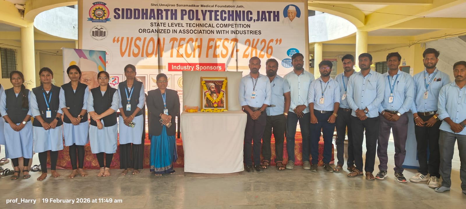 Posted : 2026-02-19महाविद्यालयात शिवजयंती उत्सव आज आमच्या महाविद्यालयात Shiv Jayanti मोठ्या उत्साहात साजरी करण्यात आली. सकाळी महाविद्यालयाच्या प्रांगणात Chhatrapati Shivaji Maharaj यांच्या प्रतिमेला पुष्पहार अर्पण करून कार्यक्रमाची सुरुवात करण्यात आली. यानंतर प्राचार्य, प्राध्यापक आणि विद्यार्थ्यांच्या उपस्थितीत ध्वजारोहण व शिववंदना करण्यात आली. विद्यार्थ्यांनी शिवाजी महाराजांच्या जीवनावर आधारित भाषणे, देशभक्तीपर गीते, तसेच नाटिका सादर करून वातावरण भारावून टाकले. काही विद्यार्थ्यांनी शिवकालीन पराक्रम आणि स्वराज्य स्थापनेविषयी प्रभावी विचार मांडले. कार्यक्रमात पारंपरिक पोशाख स्पर्धा आणि लेझीम नृत्याचेही आयोजन करण्यात आले होते. विद्यार्थ्यांनी मोठ्या उत्साहाने सहभाग घेतला. प्राचार्यांनी आपल्या भाषणात शिवाजी महाराजांचे आदर्श, शौर्य आणि नेतृत्वगुण यांचा अवलंब करण्याचे आवाहन केले. कार्यक्रमाच्या शेवटी सर्वांना प्रसाद वाटप करण्यात आले. संपूर्ण महाविद्यालयात देशभक्ती आणि अभिमानाचे वातावरण निर्माण झाले. जय शिवाजी! 🚩