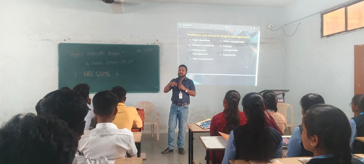Posted : 2026-02-28महाविद्यालयातील प्रोजेक्ट ओरिएंटेशन कार्यक्रम आमच्या महाविद्यालयात विद्यार्थ्यांना प्रकल्पांविषयी मार्गदर्शन करण्यासाठी प्रोजेक्ट ओरिएंटेशन कार्यक्रमाचे आयोजन करण्यात आले. या कार्यक्रमात विविध शाखांतील विद्यार्थ्यांनी उत्साहाने सहभाग घेतला. कार्यक्रमाची सुरुवात प्राचार्यांच्या हस्ते दीपप्रज्वलन करून करण्यात आली. त्यानंतर तज्ज्ञ प्राध्यापकांनी विद्यार्थ्यांना Engineering आणि Computer Science क्षेत्रातील प्रकल्प कसे निवडावेत, त्यांचे नियोजन कसे करावे आणि प्रभावी सादरीकरण कसे करावे याबाबत सविस्तर मार्गदर्शन केले. या कार्यक्रमात प्रकल्प तयार करताना संशोधन, नवोपक्रम (innovation) आणि टीमवर्क यांचे महत्त्व विद्यार्थ्यांना पटवून देण्यात आले. तसेच विद्यार्थ्यांना Artificial Intelligence, Machine Learning आणि Internet of Things यांसारख्या आधुनिक तंत्रज्ञानावर आधारित प्रकल्प निवडण्याचा सल्ला देण्यात आला. विद्यार्थ्यांनी कार्यक्रमात सक्रिय सहभाग घेतला आणि आपल्या शंका तज्ज्ञांकडून दूर करून घेतल्या. प्राचार्यांनी आपल्या भाषणात विद्यार्थ्यांना गुणवत्तापूर्ण प्रकल्प तयार करून महाविद्यालयाचे नाव उज्ज्वल करण्याचे आवाहन केले. कार्यक्रमाच्या शेवटी उपस्थित सर्वांचे आभार मानून कार्यक्रमाची सांगता करण्यात आली