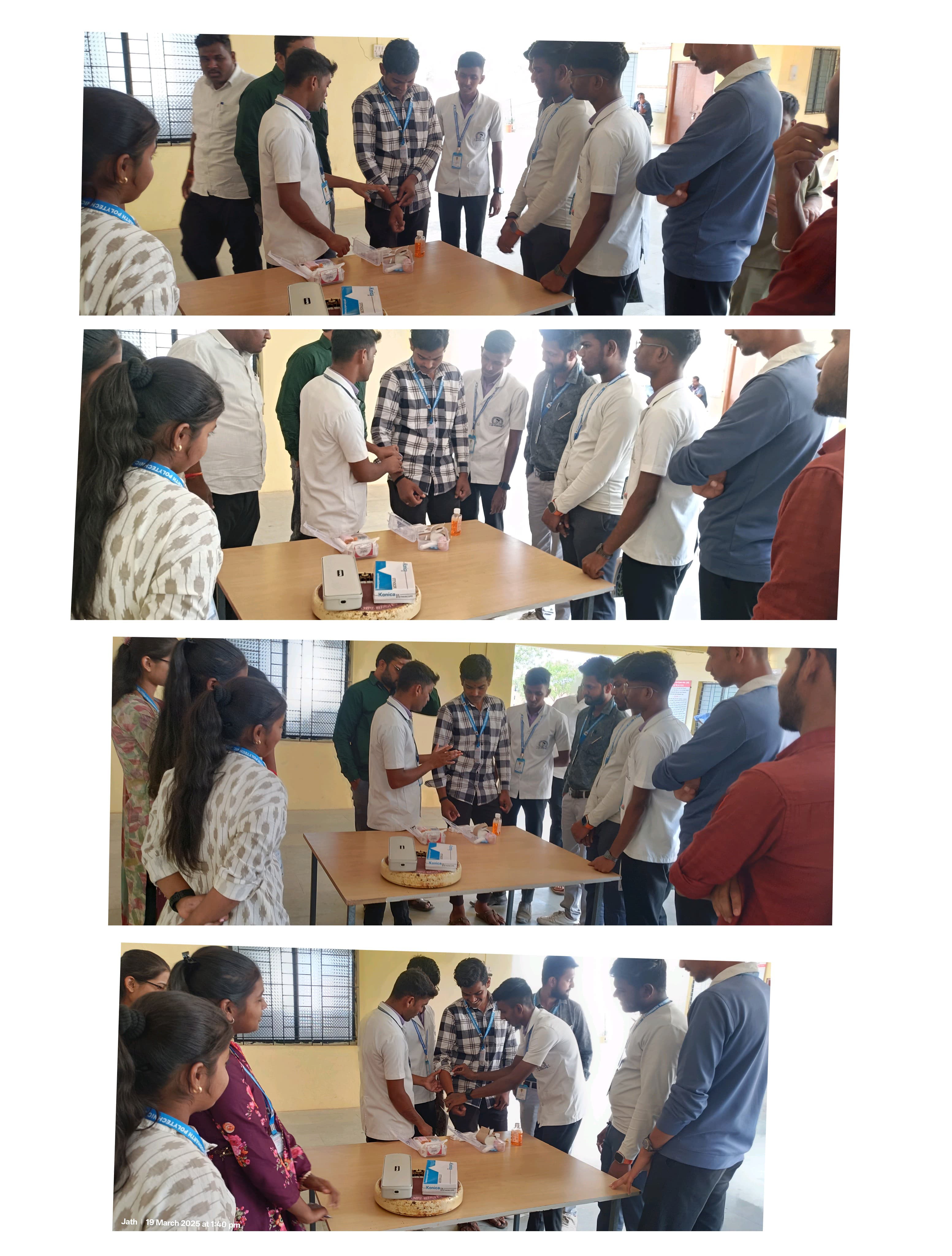 Posted : 2025-03-19आज सिद्धार्थ पॉलीटेकनिक येथे, कमल ऑर्थोपेडीक सेंटर,मल्टिस्पेशालिटी हॉस्पिटल, जत यांच्या तर्फे विद्यार्थ्यांसाठी ' आरोग्य तपासणी शिबीर ' चे आयोजन करण्यात आले होते. यावेळी मेडिसिन विभागाचे प्रमुख डॉ.के.प्रसाद, हॉस्पिटल चे स्किम मॅनेजर श्री.अमजद मकानदार,फार्मासिस्ट श्री.अमोल कोळी तसेच कमल नर्सिंग कॉलेज चे विद्यार्थी आणि विद्यार्थिनी उपस्थित होते.त्यांनी सर्व स्टाफ,विद्यार्थी आणि विद्यार्थिनी यांची आरोग्य तपासणी केली.यावेळी कॉलेज मधील प्रमुख विद्यार्थ्यांना प्रथमोपचार कसे करायचा याचेही प्रशिक्षण देण्यात आले. या शिबीरास संस्थेचे चेअरमन डॉ.वैशाली सनमडीकर,संस्थेचे चेअरमन श्री.भारत साबळे,संस्थेचे सचिव डॉ. कैलास सनमडीकर,कॉलेज च्या प्राचार्या सौ. रेणुका वागोली यांचे मोलाचे मार्गदर्शन आणि सहकार्य लाभले